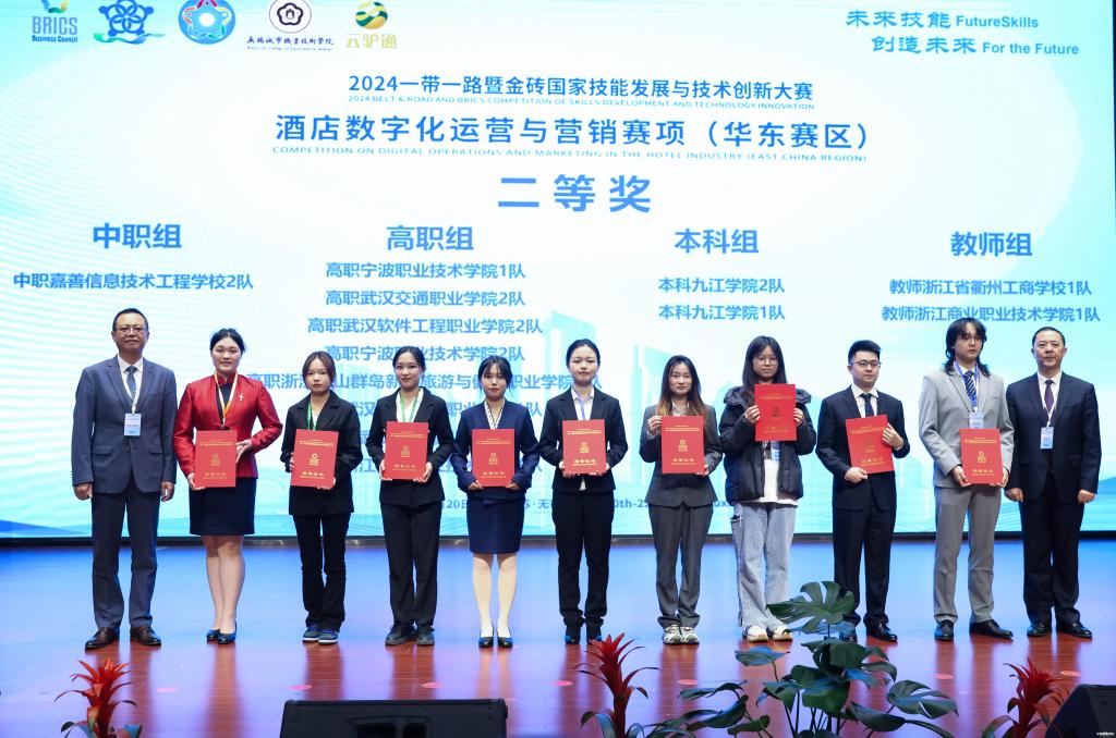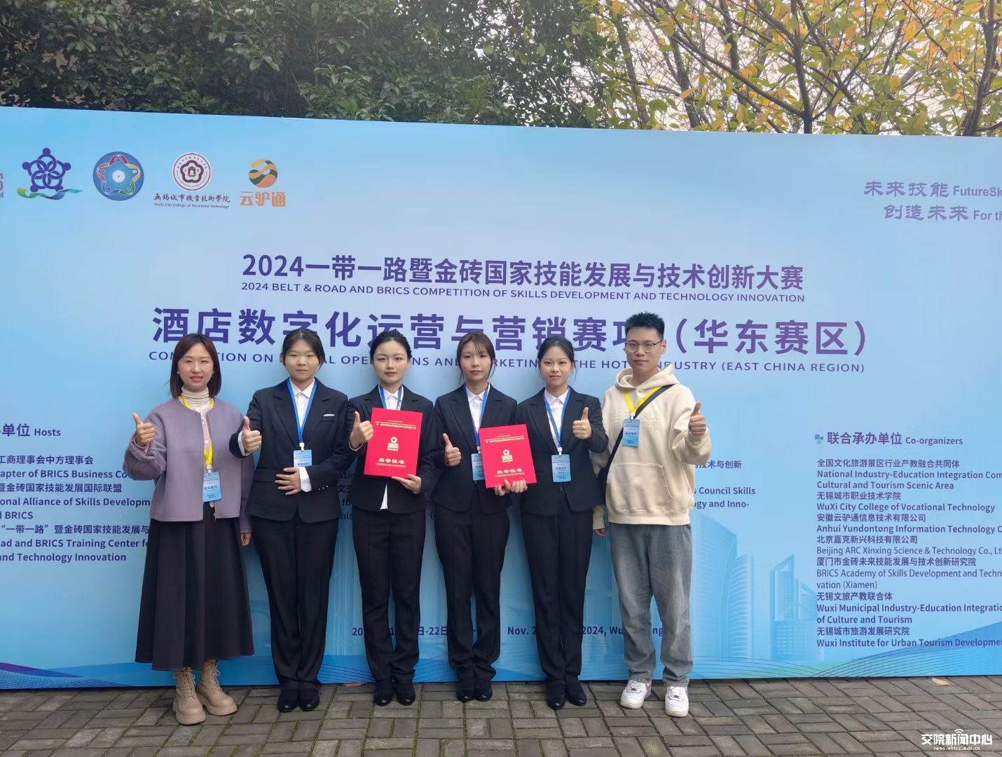 新闻网讯(记者 张钰培 通讯员 王梓安)11月20至22日,2024一带一路暨金砖国家技能发展与技术创新大赛之首届酒店数字化运营与营销赛项选拔赛(华东赛区)在无锡城市职业技术学院举行。我校交通服务与管理学院的杜韵、陈秋丰(1队)与朱梦、刘心愿(2队)参赛并获得二等奖两项,其中2队晋级国赛。