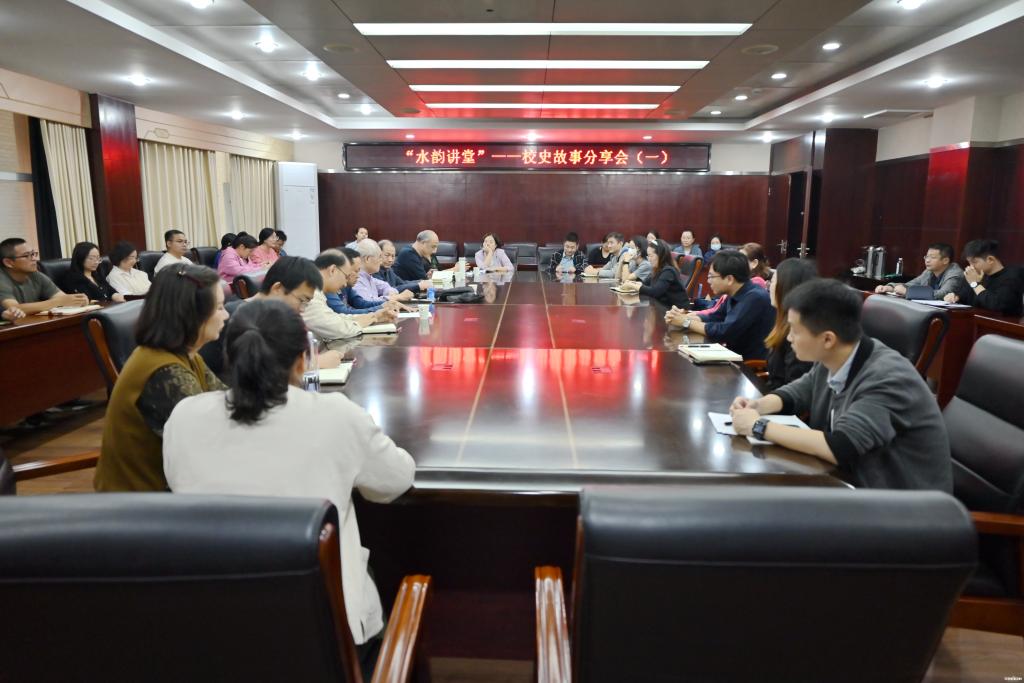 新闻网讯(记者 汪云凤)为迎接即将到来的70周年校庆,10月27日,学校在明志楼2号会议室举办水韵讲堂——校史故事分享会第一讲。学校邀请张矛、周少华、王万里三位退休老同志在会上分享校史故事。校庆筹备办公室副主任、学校办公室、校友办公室主任姜亮,图书馆、档案馆馆长崔敏和教师代表参会。离退休工作处处长林望春主持分享会。
