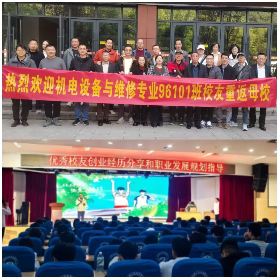 各学院结合专业特色举办系列庆祝活动,为校庆增光添彩。汽车学院举办校庆暨“大国工匠进校园”活动,特邀08级优秀校友、武汉优卡旧机动车交易有限公司创始人陈渊返校,以“优秀校友创业经历分享和职业发展规划指导”为题开展专题讲座,为新生明晰大学目标、树立科学就业创业观提供了宝贵指引。11月22日,智能制造学院机电设备与维修专业96101班校友重返母校,举办毕业 25周年聚会,校友们重游校园、共话情谊,为学院发展建言献策。