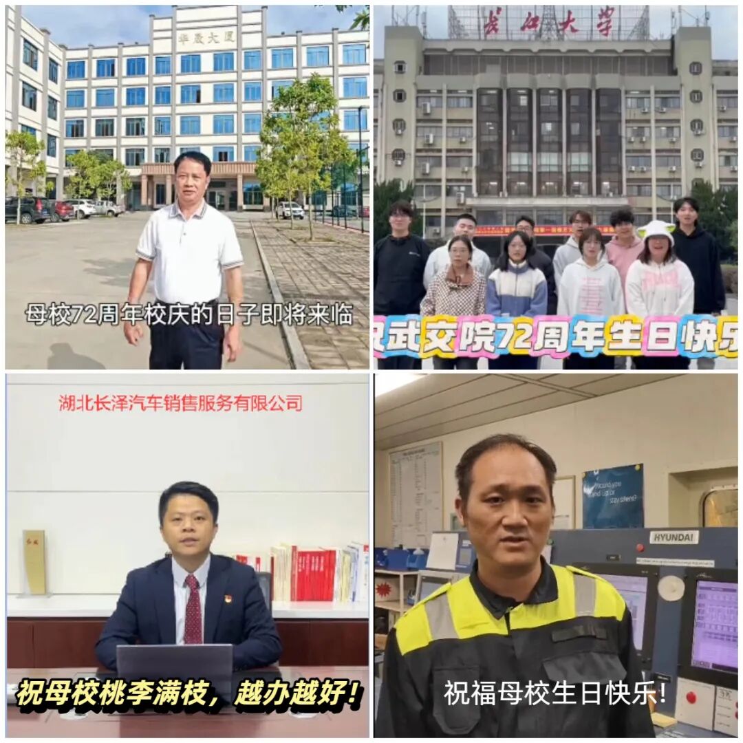 “情系母校 共送祝福”影像征集活动得到了海内外校友的热烈响应。校友们热情洋溢的祝福纷至沓来,既有正在远洋航行、出差中东的海外校友通过镜头诉说思念,也有年逾古稀的老校友们追忆求学时光、寄语学校未来.....一句句真挚的祝福、一段段珍贵的回忆,跨越山海汇聚成爱的暖流,这份专属于武交院人代代相传的深厚情谊与归属感,让建校72周年纪念活动格外温馨美好。