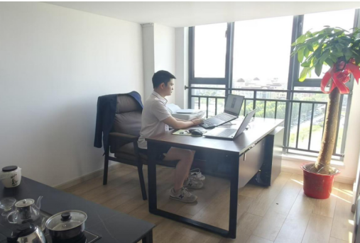 ▲谭森亮在工作室办公